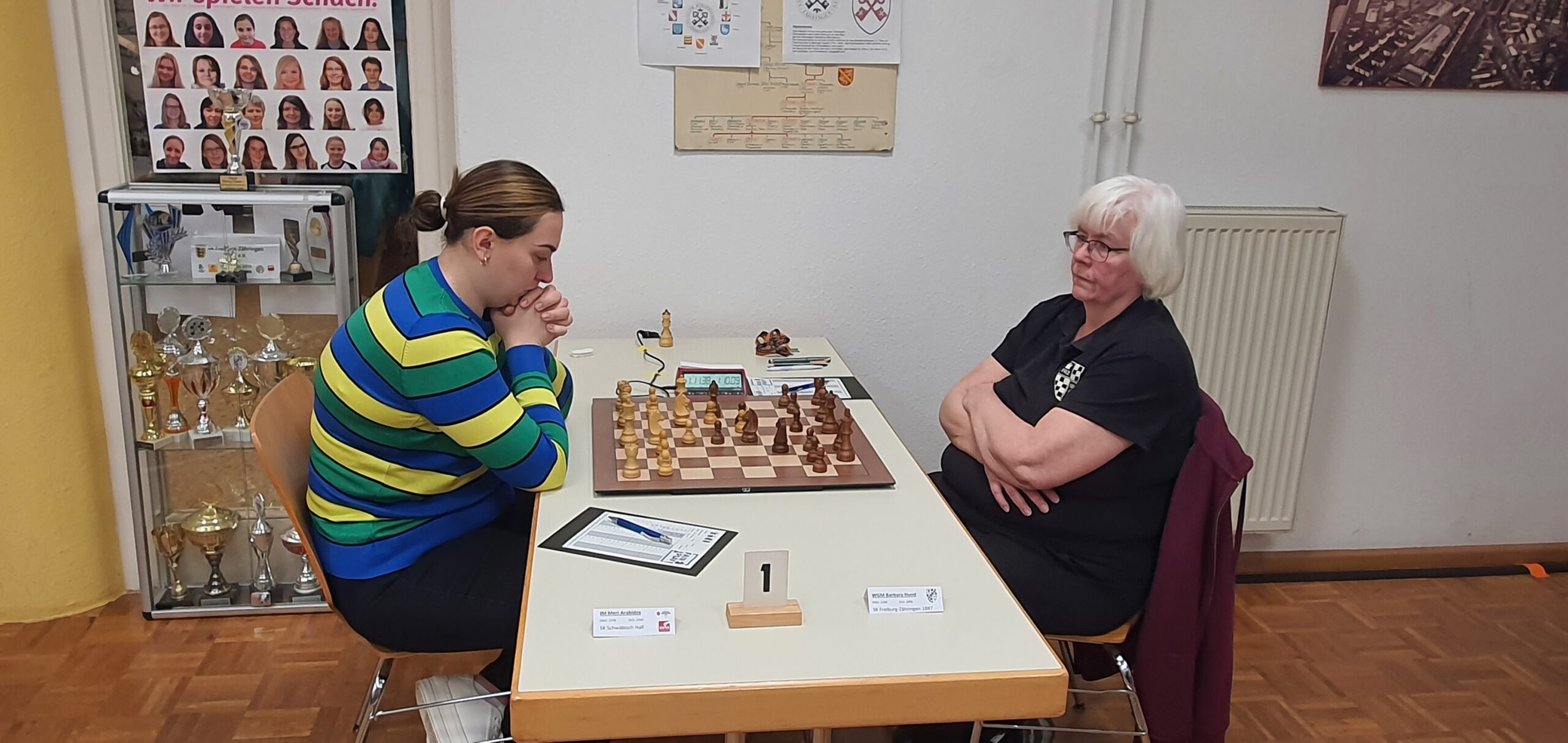 Zu dem kommt es morgen zu dem Spitzenduell zwischen dem Tabellenführer Schwäbisch Hall und dem Verfolger OSG Baden-Baden. Damit könnte eine Vorentscheidung um die deutsche Meisterschaft der Frauenbundesliga im Zähringer Keller fallen. Beide Teams sind bis dato ungeschlagen; auch nach den heutigen Mannschaftskämpfen.